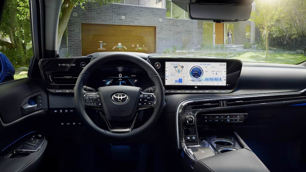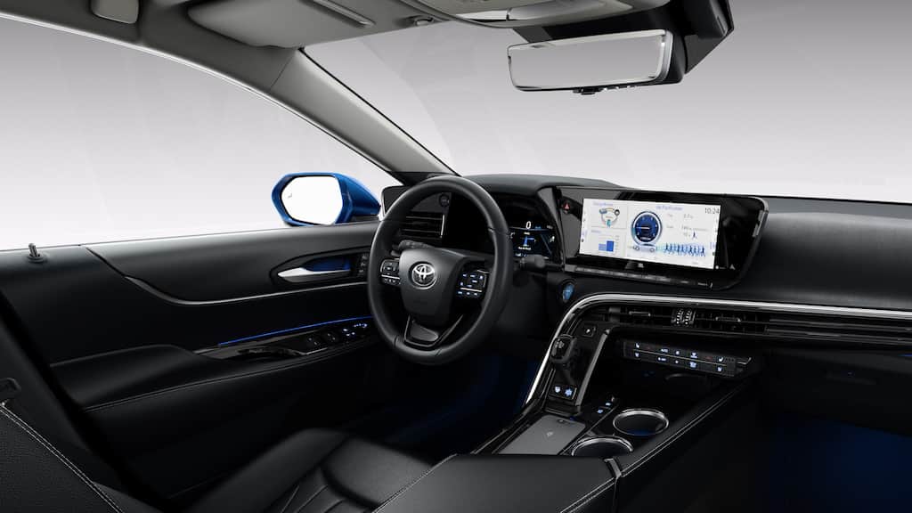 Au niveau du poste de conduite, le conducteur prend le contrôle de façon intuitive. L’ergonomie de la Mirai se retrouve aussi sur son tableau de bord, avec ses écrans d’information haute définition. Le véhicule vous offre un nombre impressionnant de fonctionnalités, dont une caméra de recul et à un chargeur à induction. La Toyota Mirai intègre les dernières technologies qui simplifieront votre conduite.